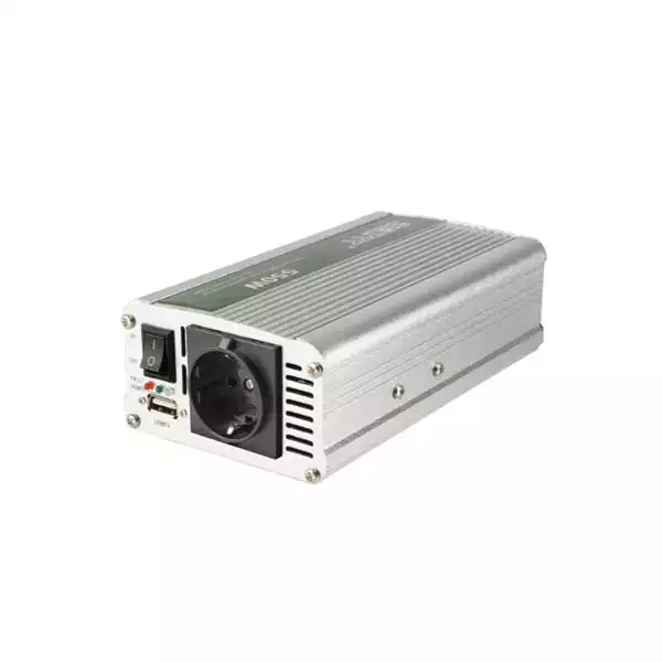 | Ostalo | Napajanje: 12V DC -> 230 V~ inverter Opterećenje: 1000 / 500 W (maksimalno / konstantno) Efikasnost: 85-90% Zaštita od preopterećenja, pregrevanja, kratkog spoja, praznog akumulatora Priključci: Utikač za upaljač, štipaljke za akumulator, USB utičnica (5 V, 500 mA max.) Masa: 584 g Dimenzija: 170x55x90 mm |